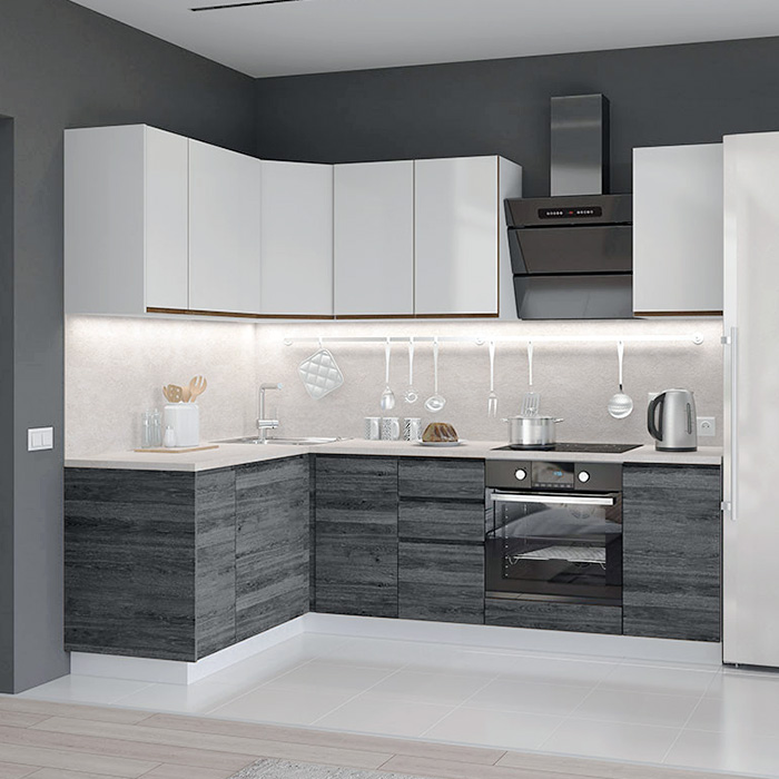 При производстве внимание уделено и общей природной стилистике, и мелким деталям. Подъемные механизмы, фурнитура, доводчики — они создают удобство при ежедневном использовании ящиков и различных отделений. В продаже также имеются декоративные панели, которые помогут закрыть технику или переход между модулями кухни.